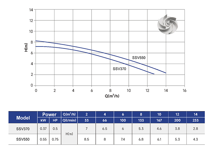 ¡ù Maximum flow 233 l/min. (14m³/h)